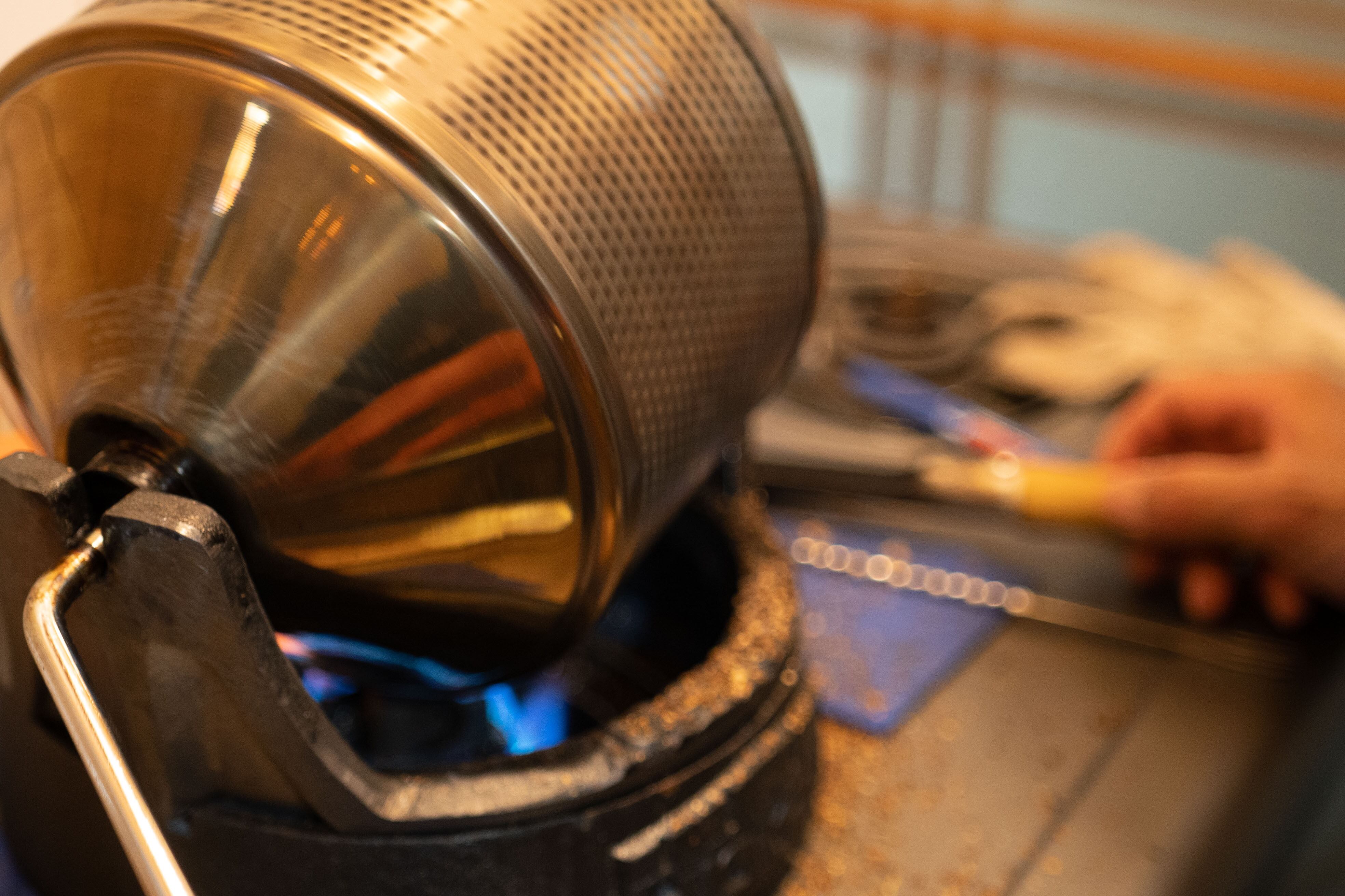 珈琲は手廻しのロースターを使って、直火でじっくり気持ちを込めて焙煎しています。